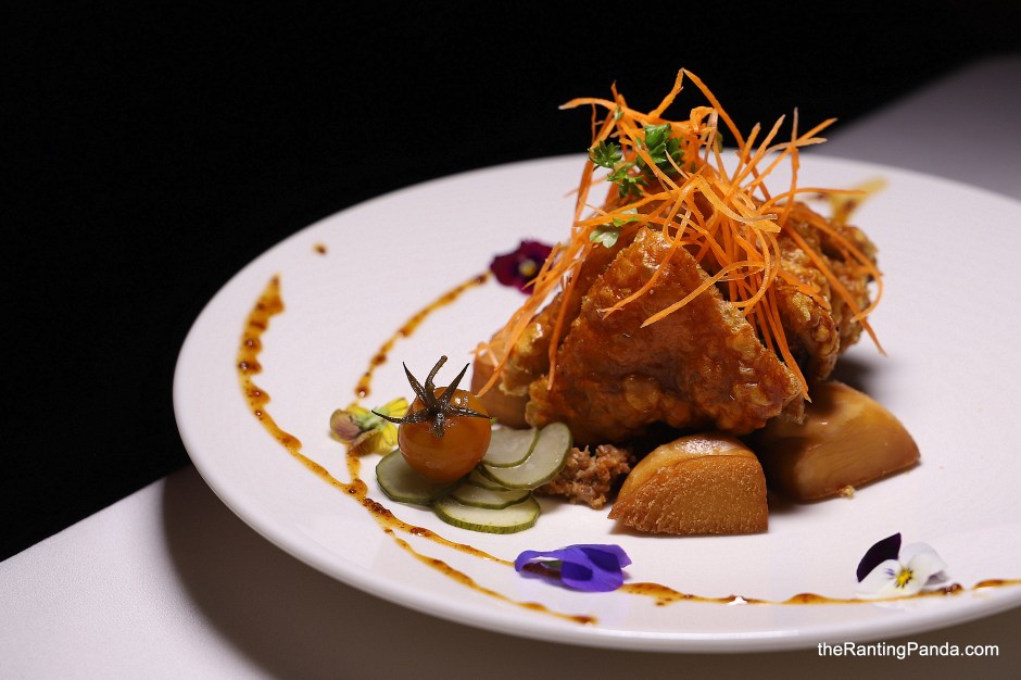 The Food Expect to find familiar Chinese dishes infused with western elements. I started with a snack from the Tapas Menu, the Crispy Pork Belly Mantou (S$12). This dish is inspired from braised pork buns (aka ‘kong bak bau’) and is delicious for a start. I enjoyed the crispy pork skin and it goes well with the soft bun which is also soaked in some sauces.