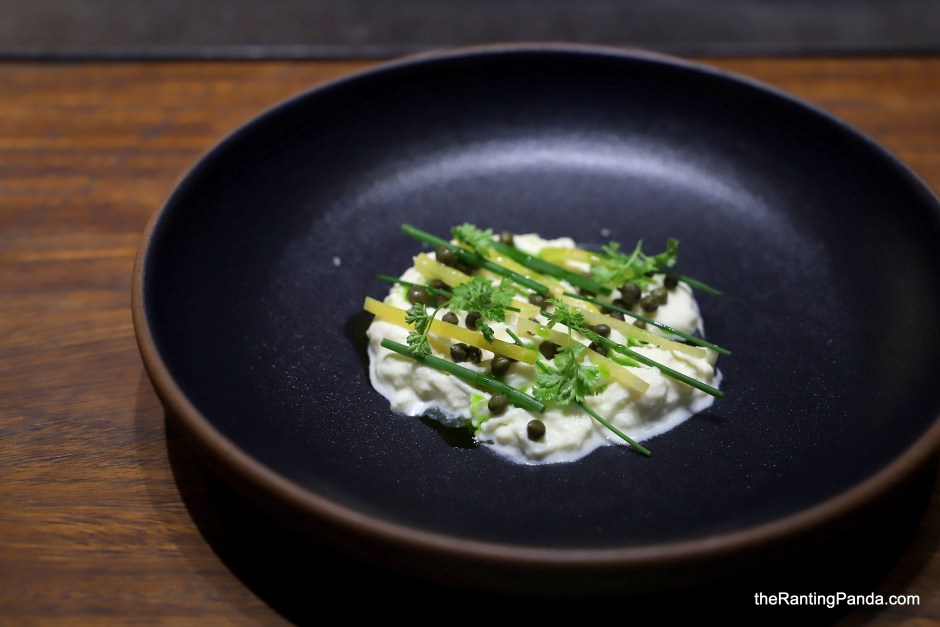 The next dish was the Stracciatella Cheese with Capers & Herbs. The presentation looks simple with a white pile of cheese, but the cheese flavour is subtle and not too overpowering. It may seem like an odd combination with the capers & herbs, but it all blends well together.
