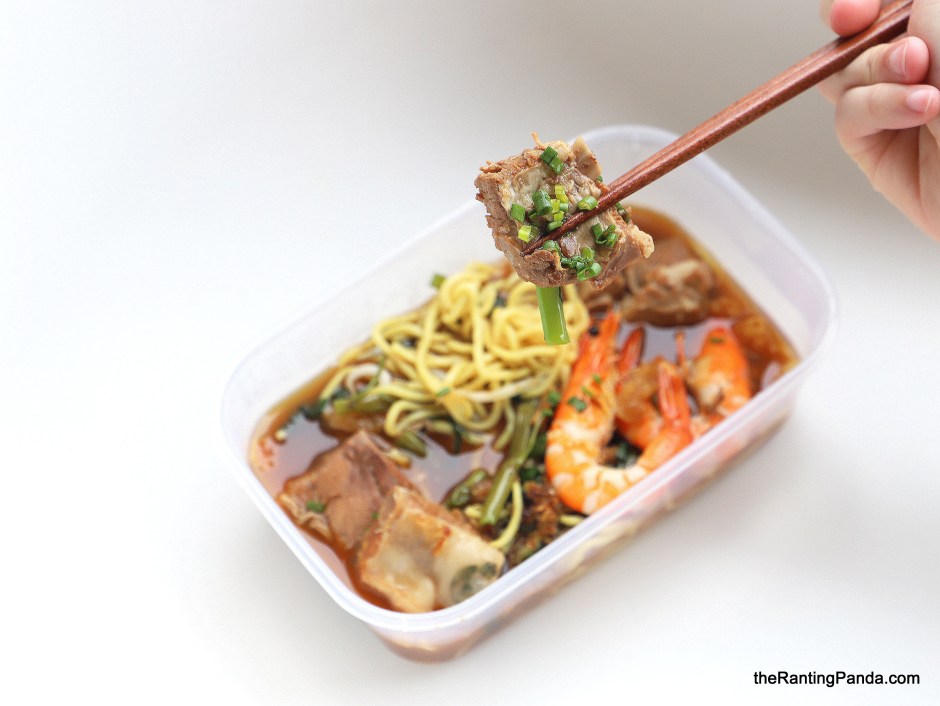 The soup was packed separately from the noodles, which works best if you do not live nearby. Despite the journey home, the prawn noodles turned out pretty good. I like the broth, a flavourful version prepared from pork broth and prawn shells.