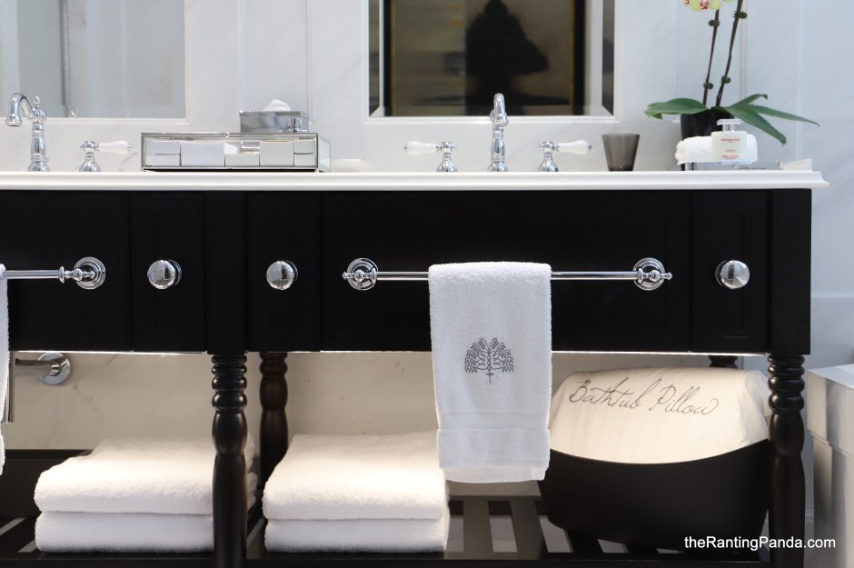 I really like the white marble finishing in the bathroom! Double sinks, bathtub (there is even a bathtub pillow), separate shower and toilet, and most importantly, it is very spacious.