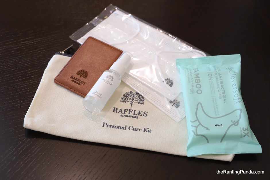 There is also a welcome kit on the table, this Personal Care Kit is also retailing at the Raffles Boutique.