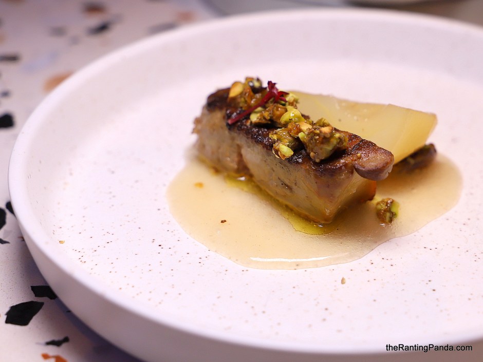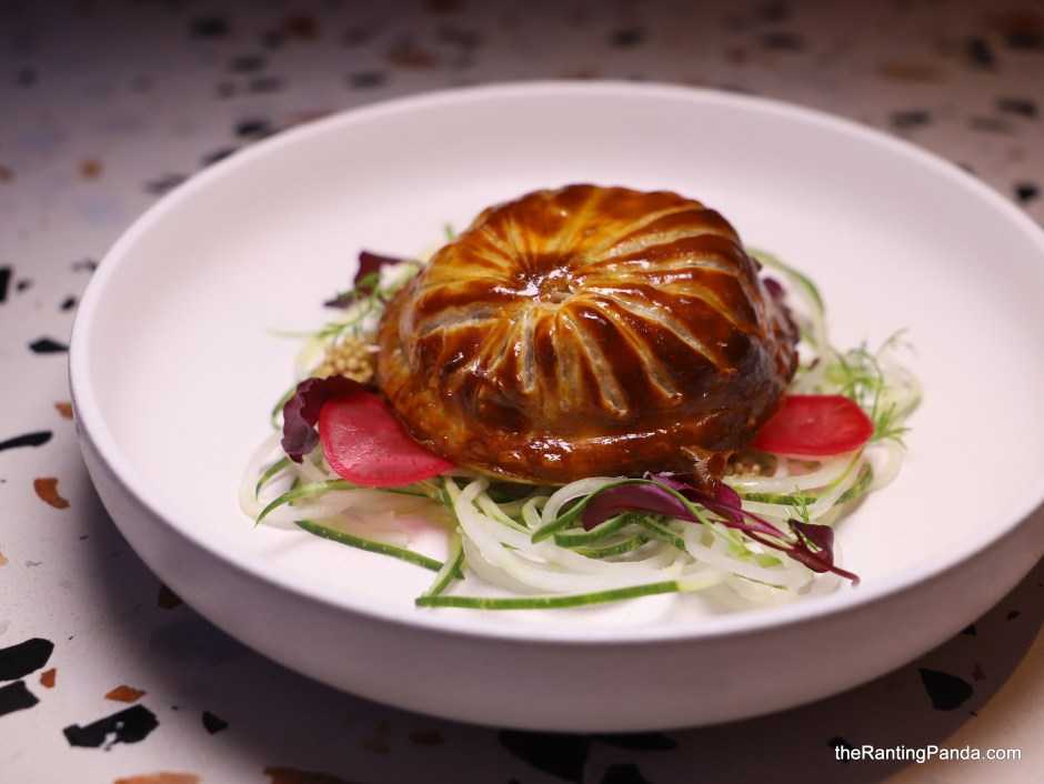 One starter which reminds me of a dim sum puff is the Pork Jowl Pithivier (S$15.90), inspired from the traditional French dish. The pork jowl here is filled within the puff pastry pie, as characterised by the spiral lines on the exterior. This is a technically challenging dish to prepare, and you can expect a slightly crispy crust along with tender pork jowl within.
