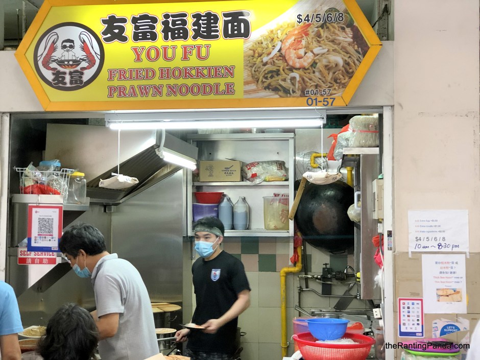 The Place One Hokkien Mee stall in Singapore which gained quite a high profile media reporting is YouFu Fried Hokkien Prawn Noodle located at Golden Mile Food Centre. The relatively new hawker stall is along the same row on level one as the grass jelly drink and Chilli Mee stalls, and is run by a young hawker Andre and his father. Andre’s father used to help out at a Fried Hokkien Mee stall in Changi Village, and he has a keen interest in cooking since young as quoted from an interview with Mothership.