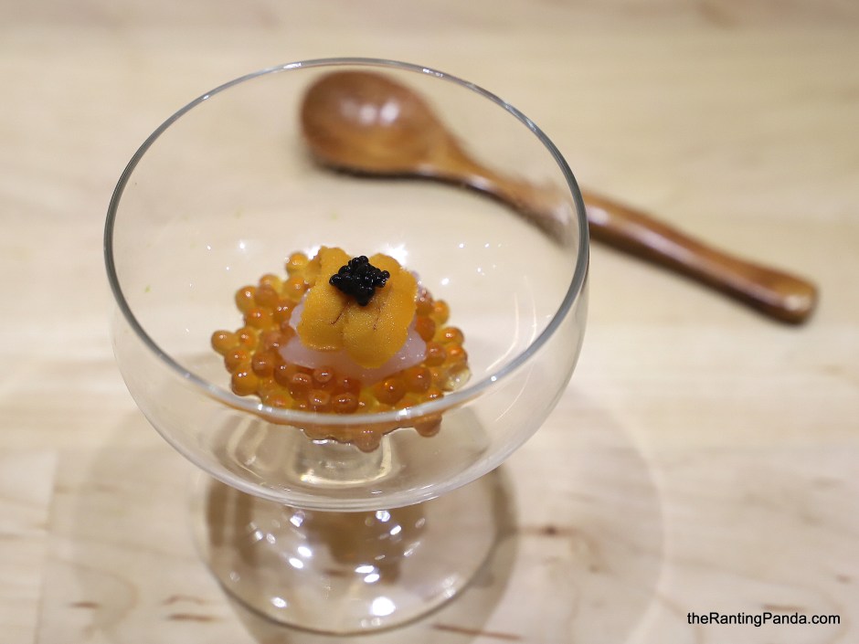 The second appetiser I had is a mix of Ikura, Uni and Scallop in a cocktail cup. It is all raw, and the three ingredients bar very fresh. Off to a good start!