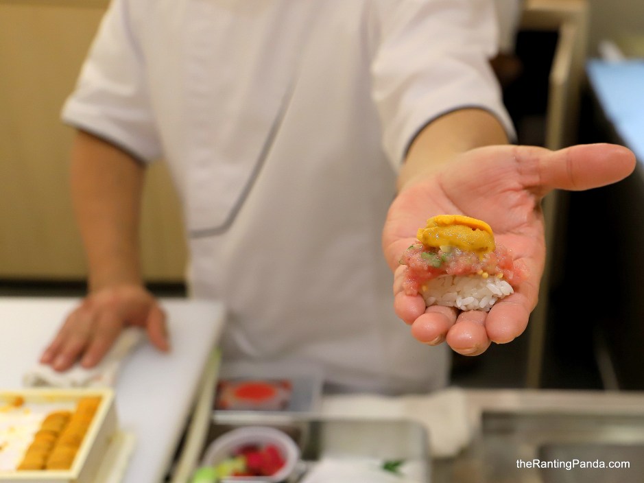 The last sushi I had is one of Chef Ron’s signature, aptly names “Forget Me Not“. This is essentially Negitoro with Uni nigiri sushi, where there is also bits of crispy rice puffs here hence the crunchy texture. Love the combination of Tuna and Uni here!