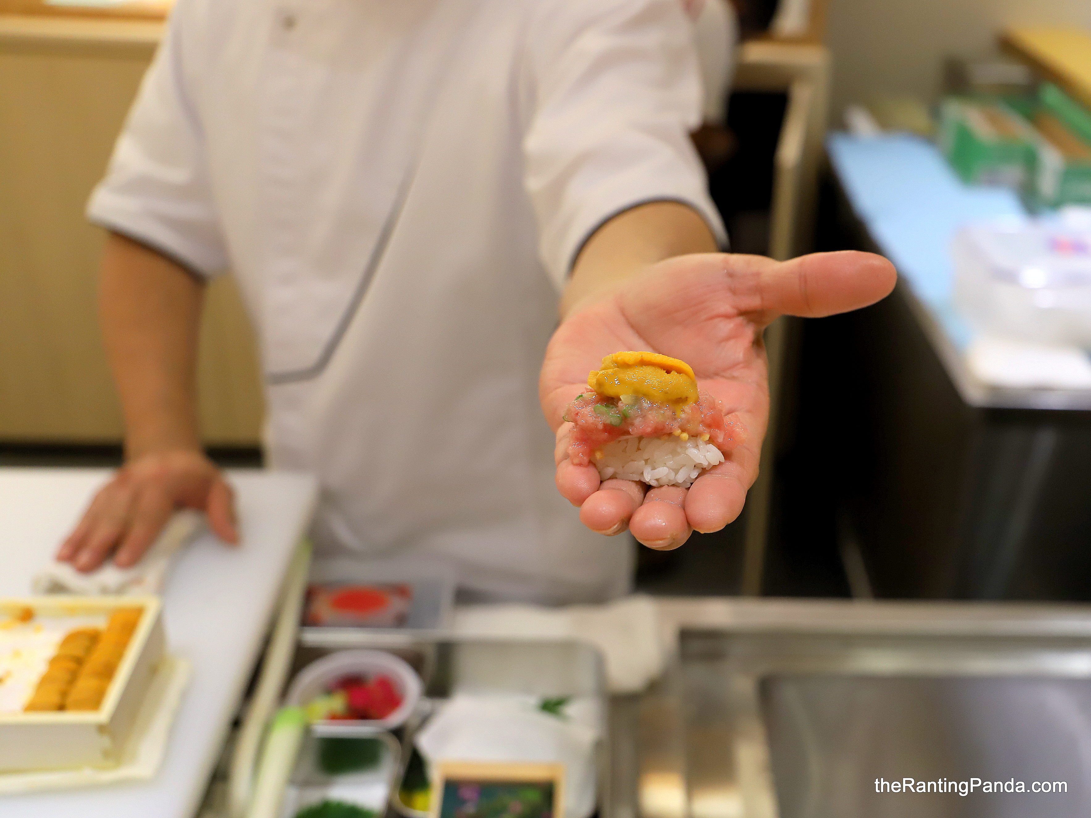 The last sushi I had is one of Chef Ron’s signature, aptly names “Forget Me Not“. This is essentially Negitoro with Uni nigiri sushi, where there is also bits of crispy rice puffs here hence the crunchy texture. Love the combination of Tuna and Uni here!