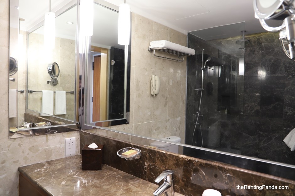The bathroom is decent and comes with a rain forest shower, and Crabtree & Evelyn toiletries. A small gripe I have is the mismatch of tile colours for the bathroom floor and the shower area, which I am sure the OCD in you will notice.