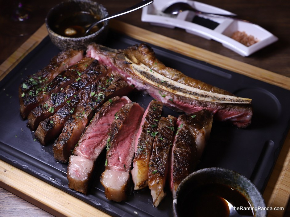 - Signature 1kg U.S. Black Angus bone-in rib eye, dry-aged, marble score 4;