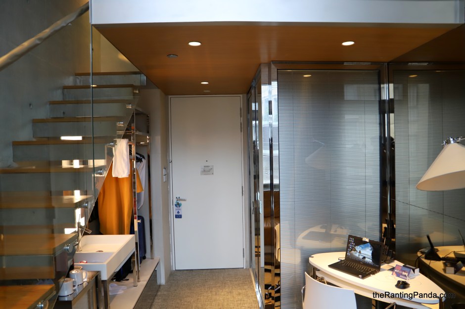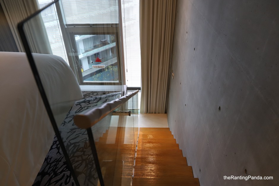 The ground level is where the bathroom, work desk, sofa, TV, mini-bar are placed, where the upper mezzanine fits a queen size bed. I opted for this category as I always find it quite interesting to have a bed at the mezzanine level. That said, there are also practical inconveniences such as the need to use the bathroom in the middle of your sleep and it is not fun to navigate those steps down from the bed.