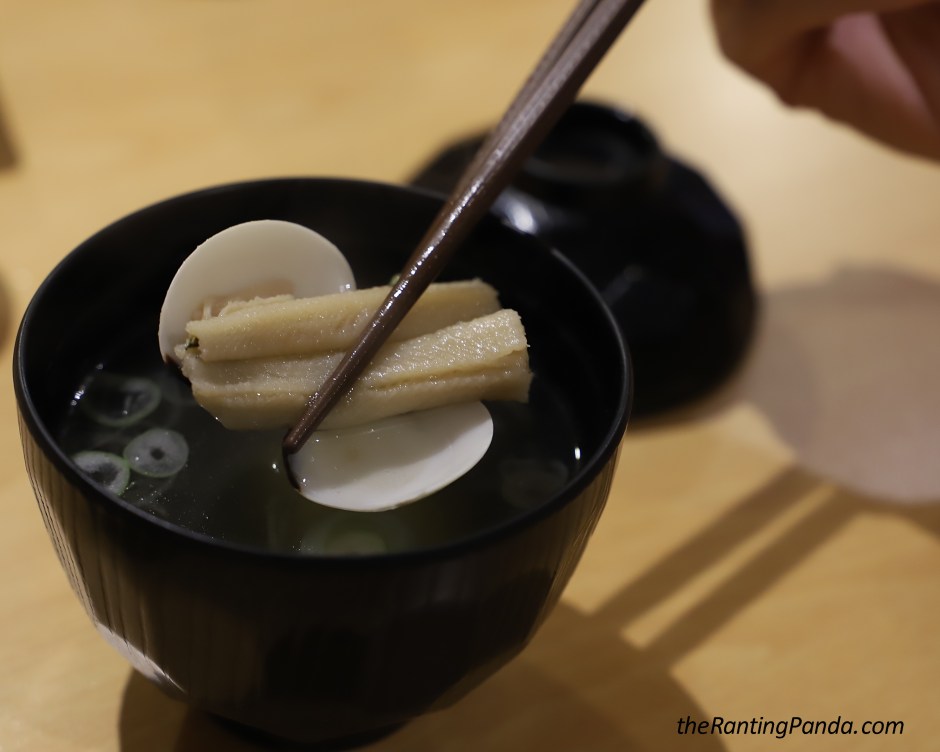 A Soup dish before the sushi courses, I had the Anago (Sea Eel) and Asari Clam Soup. Most soups I have encountered so far have clams, and it is the first time I have Anago in the soup. I guess this is chef’s way of making the ordinary soup course slightly more luxe.