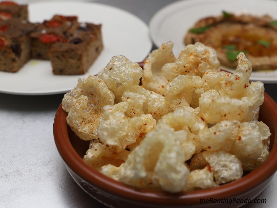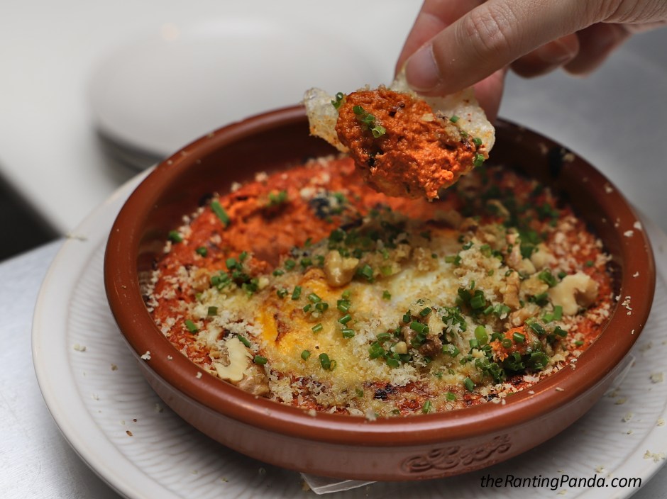 The Chicharrones or puffed pork skins is crispy and addictive! Have it along with the delicious Cauli-Hummus or the Eggs Muhammara!