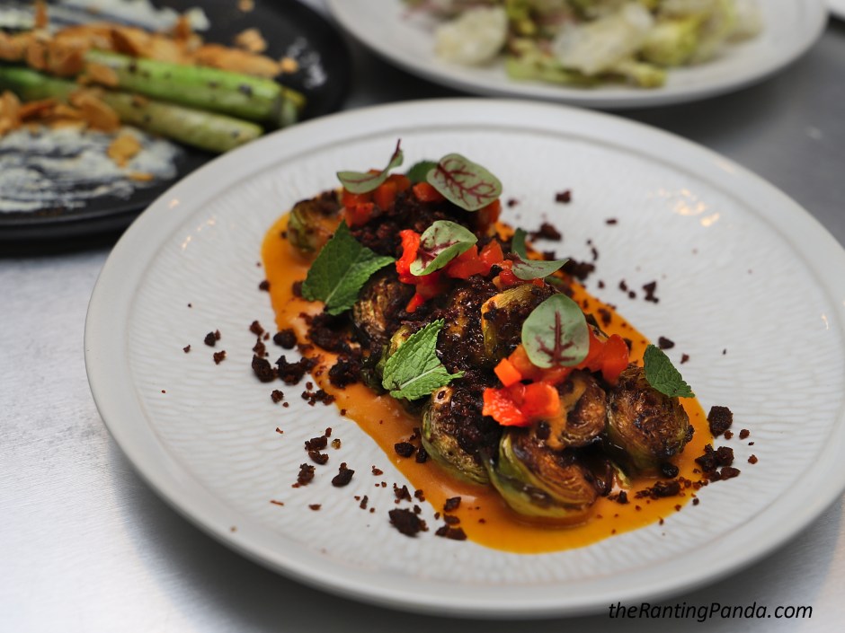 Some vegetables to balance the meal thus far, I had the Brussels Sprout (S$16) with chorizo sabayon, burnt peppers, mint and sausage crumbs; and the Asparagus (S$18) with minted goat cheese and spiced almonds.