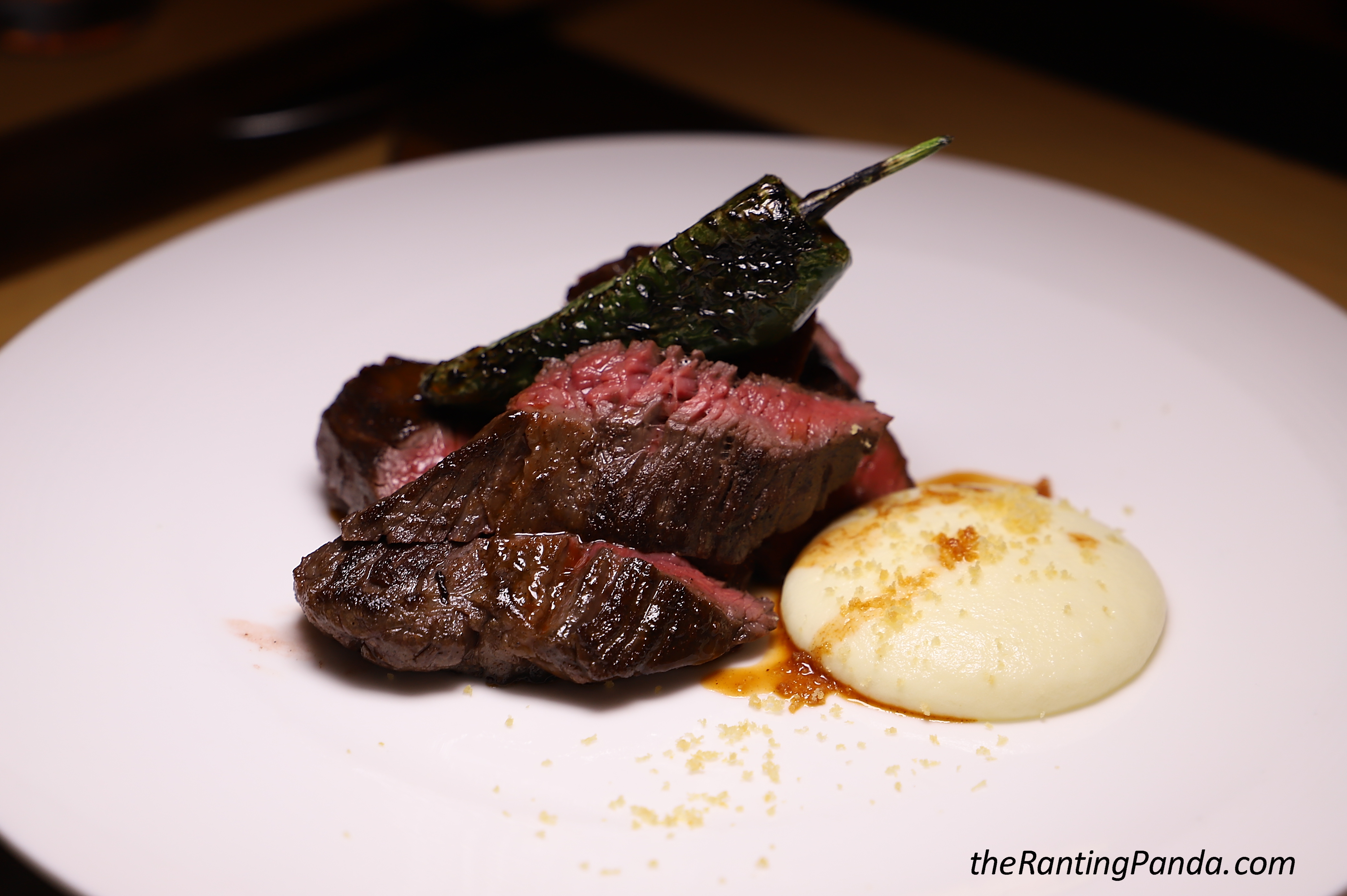 The mains for the night was the Wagyu Flank. Unfortunately, I have limited knowledge of the dish as the wait staff offered no insights on the mains when it was served – something I took issue on considering this is an omakase meal. For folks familiar with omakase, the chef will typically provide an introduction to the dishes when served as these ought to be the chef’s signature dishes or are dishes the chef will like to showcase on. When prompted for more, the wait staff roundly informed us that these are Wagyu Flank done medium rare as requested and off he went.