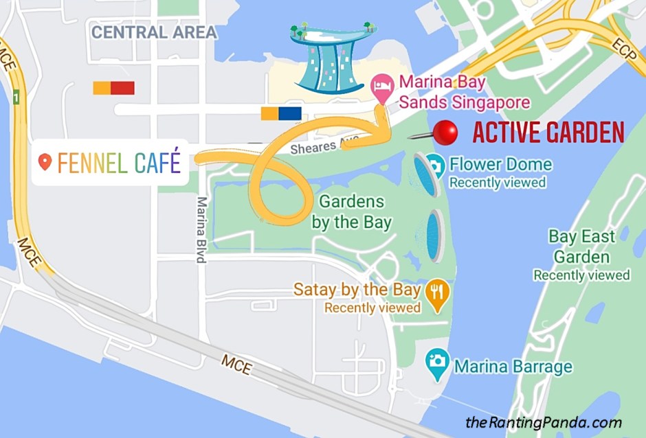 Directions: If you are coming from Marina Bay Sands/Helix Bridge, walk for approximately 5 minutes along the Waterfront Promenade under Benjamin Sheares Bridge and Active Garden/Fennel Cafe will be on the right. Unfortunately, the cafe is not exactly very near the carpark or MRT station and involves a considerable walking to get there.