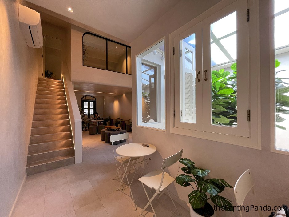 The space on level 2 is perfect for an afternoon snack. It is spacious, with pots of greenery at the corners, along with natural light.