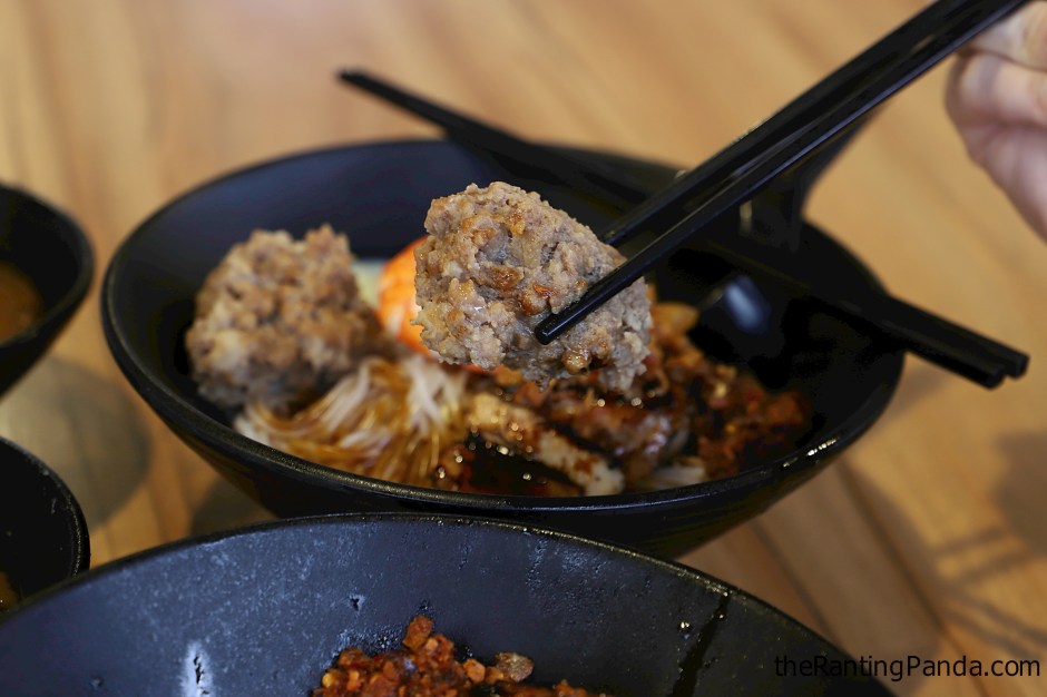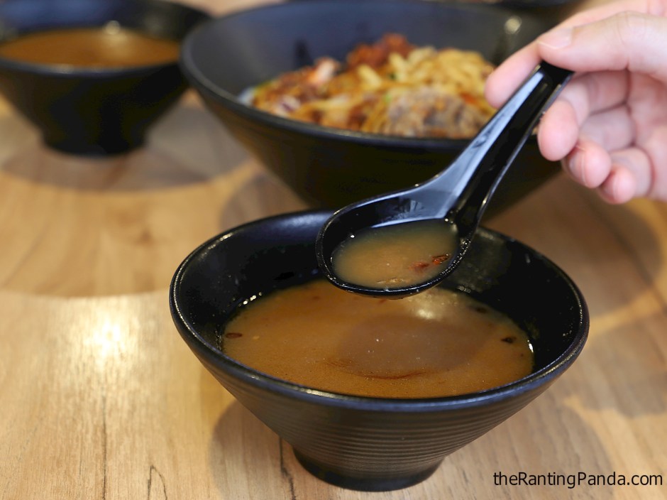 From their online reviews, most are recommending me to go for their dry version. Done with their homemade black sauce, and with various ingredients, including Prawn and Pork Ball, Kurobuta Pork, Onsen Egg, and topped with pork lards and shallots. The dish also come with a bowl of prawn broth, which really packs much flavour.