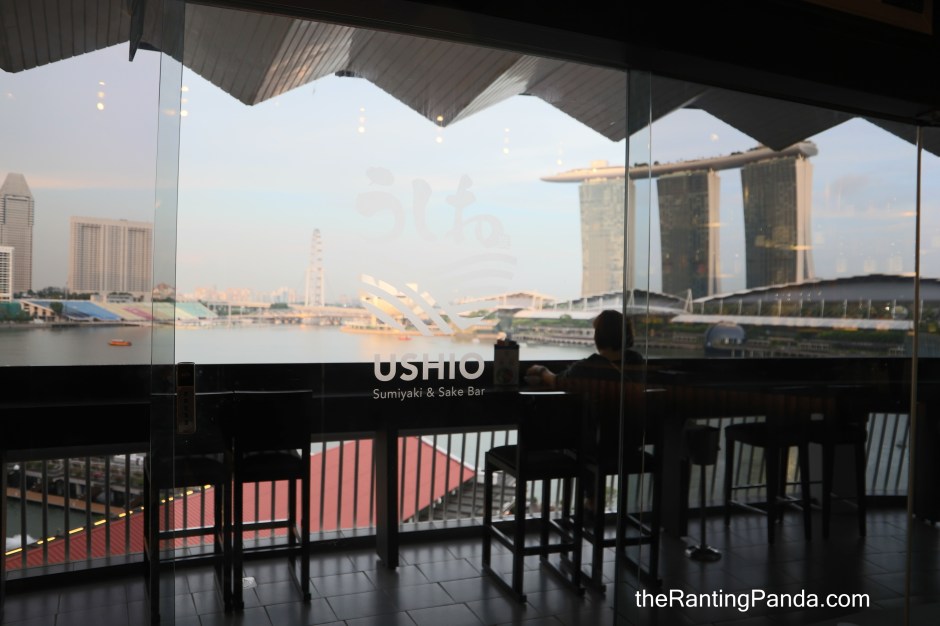 The Place Opened since last December, I was keen to check out Ushio, a Japanese Sumiyaki & Sake Bar restaurant in OUE Tower. The brand is part of TungLok Group, located on level 8 of the iconic tower, boasting a splendid view of Marina Bay. There is almost an equal seating capacity of indoor and outdoor seats, and I opted for indoor which also give me a pretty good view of the city.