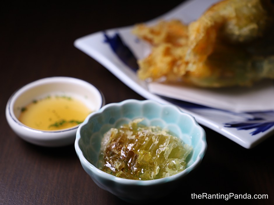 The Zucchini Blossom Tempura (S$20) is an interesting dish. The zucchini is stuffed with crab and scallop, and served with natural honeycomb and shiro ponzu sauce. It was my first time having tempura with honey, though I still prefer it with the ponzu sauce. I also like that the batter of the tempura is light, and very crisp.