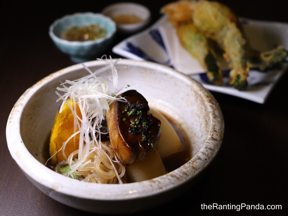The Food The dishes here focus on Japanese-style charcoal grilled dishes, sharing plates and smoky donburi. There is also an extensive range of sakes from major prefectures in Japan. I started with the Ox Tendon & Foie Gras Oden (S$19), a combination along with Japanese pumpkin, daikon and shirataki noodles. You get a chunky pan-seared foie gras and flavourful slow-braised tendon.