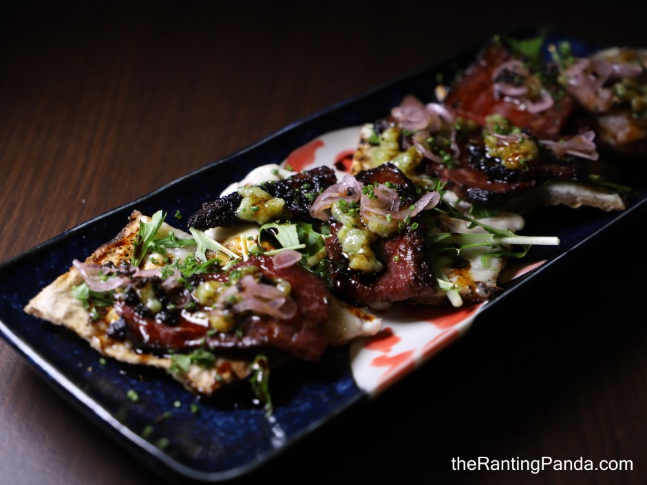 I must have been on a beefy mode, and went for a series of beef dishes next. The Koji Beef Flatbread (S$25) is the restaurant’s take on open pizza/sandwich. The Koji-cured US beef has burrata mozzarella and aged soy vinaigrette, atop the buckwheat flatbread. It comes with 4 slices, good to share.