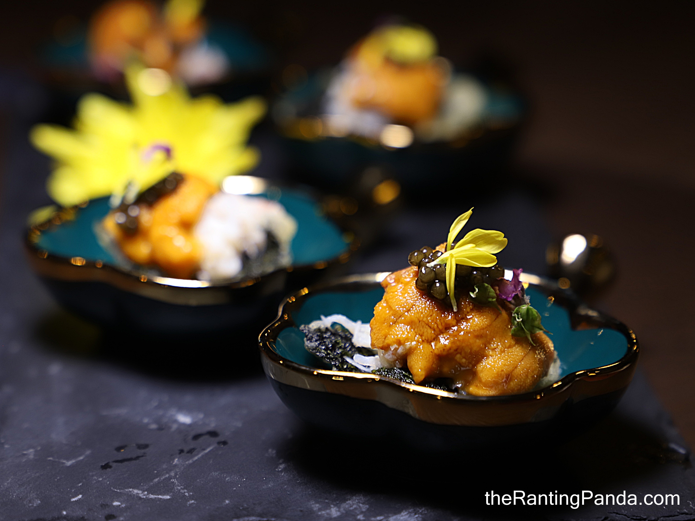 The second snack is the Uni Tempura, featuring Hokkaido uni on crabmeat and crispy seaweed tempura, topped with caviar.