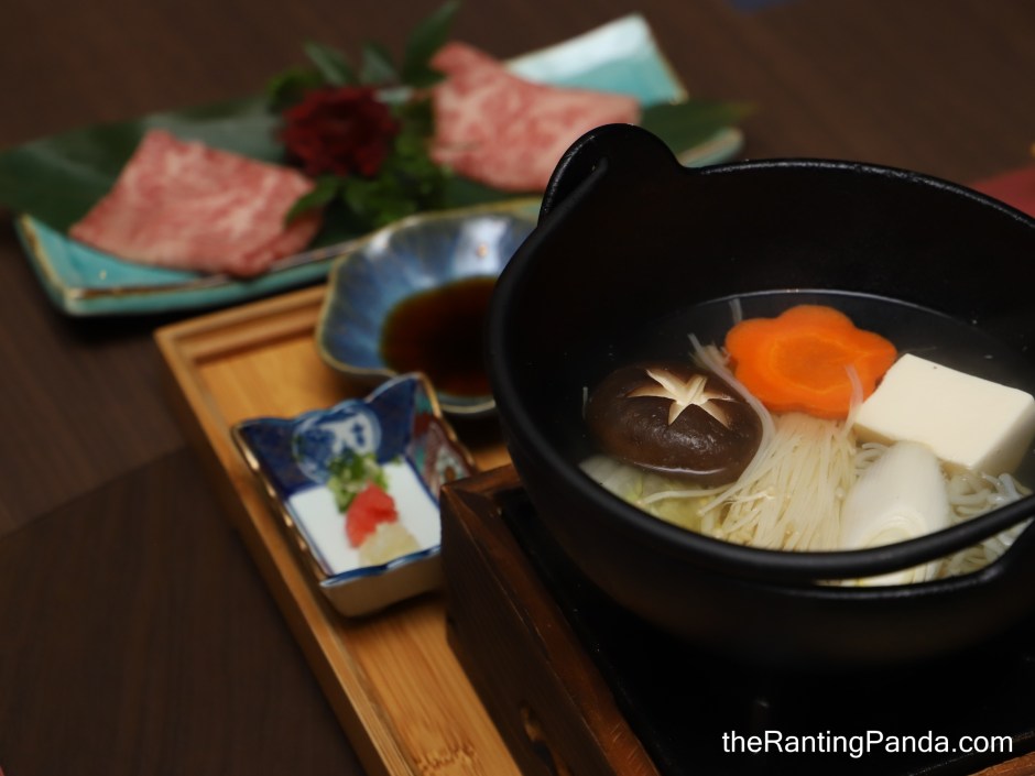 This is a hotpot course featuring thinly sliced Sanuki beef slices, and an array of condiments. I had the Sanuki Wagyu from Kagawa.