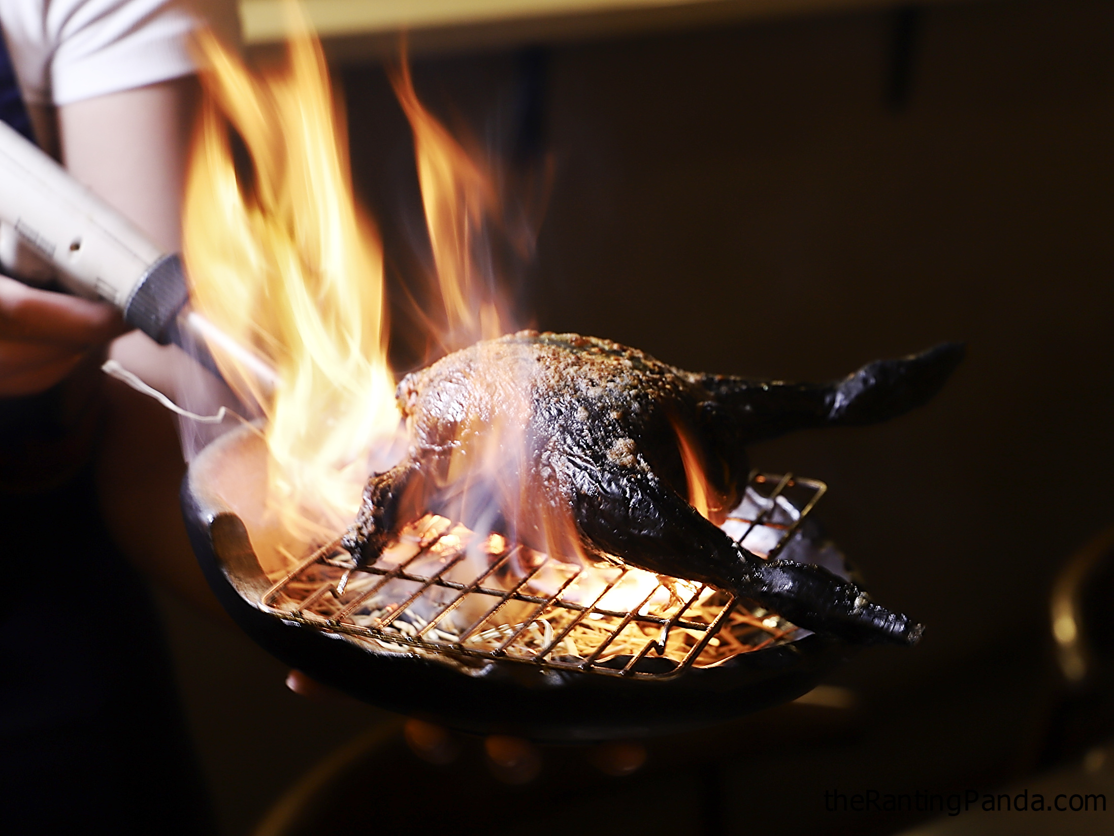 Another classic sharing dish on the menu is the Stuffed Black Chicken (S$46) which is great to share for 2. This is definitely a East meets West dish as the chicken is stuffed with lardon glutinous rice, truffle and foie gras. It is also a theatrical presentation where the chicken is smoked in front of diners, a good play on the sense of smell.