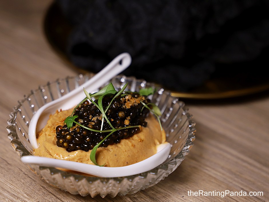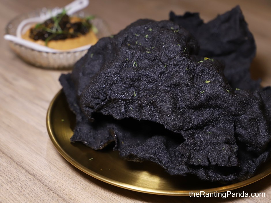 It may not be the most insta-worthy dish, but the Squid Ink Crackers (S$13) scores for me with its creamy prawn-infused dip made from the Heads and shells of prawn that goes into another dish on the menu, the Blue Prawn Roll (S$22). It is also topped with soy marinated sago pearls to mimic the texture of caviar.