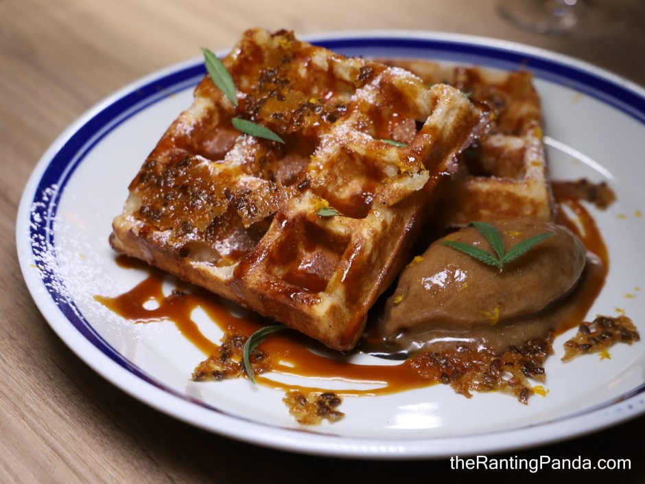 For desserts, there is the Sourdough Waffles (S$12/small) topped with 100% raw banana ice-cream, gula jawa salted caramel, flaxseed tuille and passionfruit marigold.