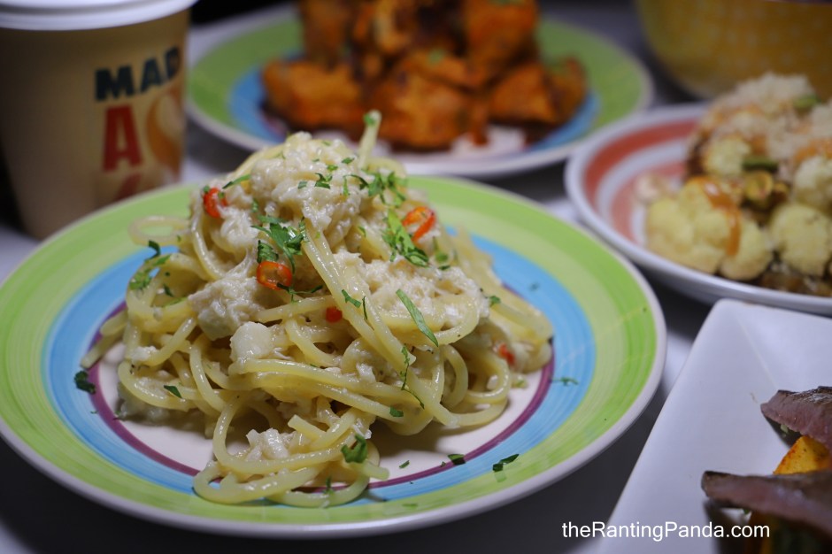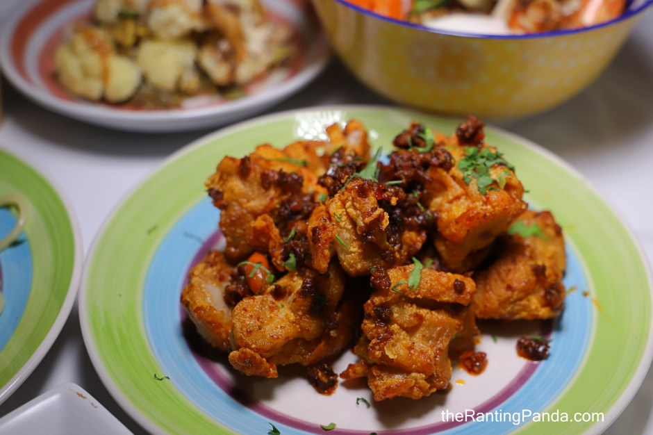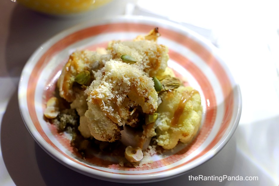 Come evening, it is a different menu with highlights like the Spicy & Numbing Fried Chicken, Crab Pasta in Aglio Olio and Foie Gras Pasta in Aglio Olio sauce, and a cocktail menu as well. I started off with dishes from the Sharing Plates section and the Cauliflower with Miso & Premium Nuts, Cucumber (S$15) is moreish and I especially like the play of miso here.