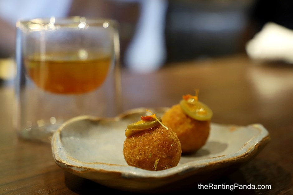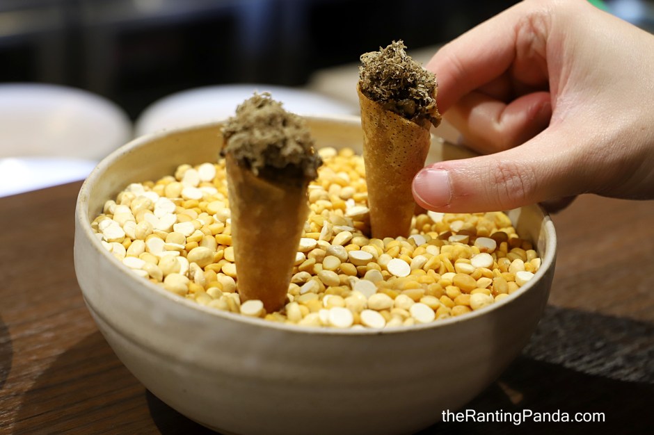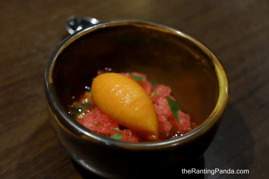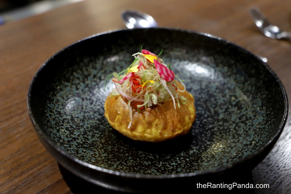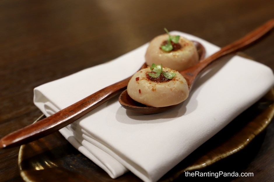 For the Chef’s Menu, my meal started with a series of snacks, in the following order of sequence – Beetroot Chaat, Summer Truffle Maitake Mushroom Samosa, Crispy Pork with Sambal Aioli, and the Pani Puri.