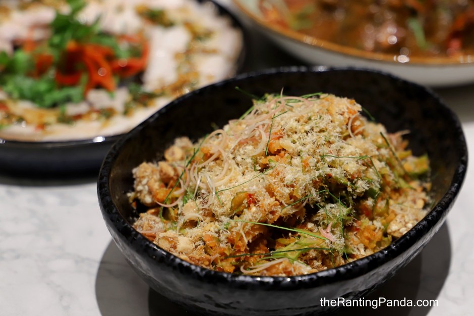 One dish which surprised me is the Kedondong Salad (S$15). A salad of wing beans, fresh ambarella (kedondong), julienned kaffir lime leaf, and ginger flower, tossed with peanut brittle and shrimp floss, it is refreshing yet moreish and that peanut brittle is my favourite element here.