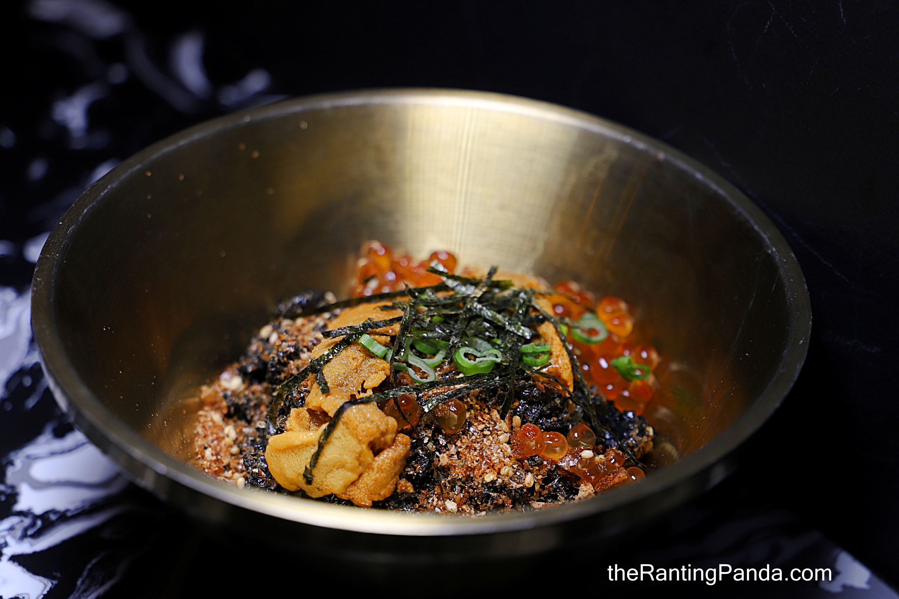 A fancier tapas option would be the Black Gold Shiro Bara Uni (S$40) where the Squid-ink Akita rice is topped with Uni & Ikura. I realise that the chef likes to use black to contrast the ingredients, in the case for this dish and the charcoal chicken earlier. It is a beautiful contrast of colours in terms of presentation as the bright Uni and Ikura stand out.