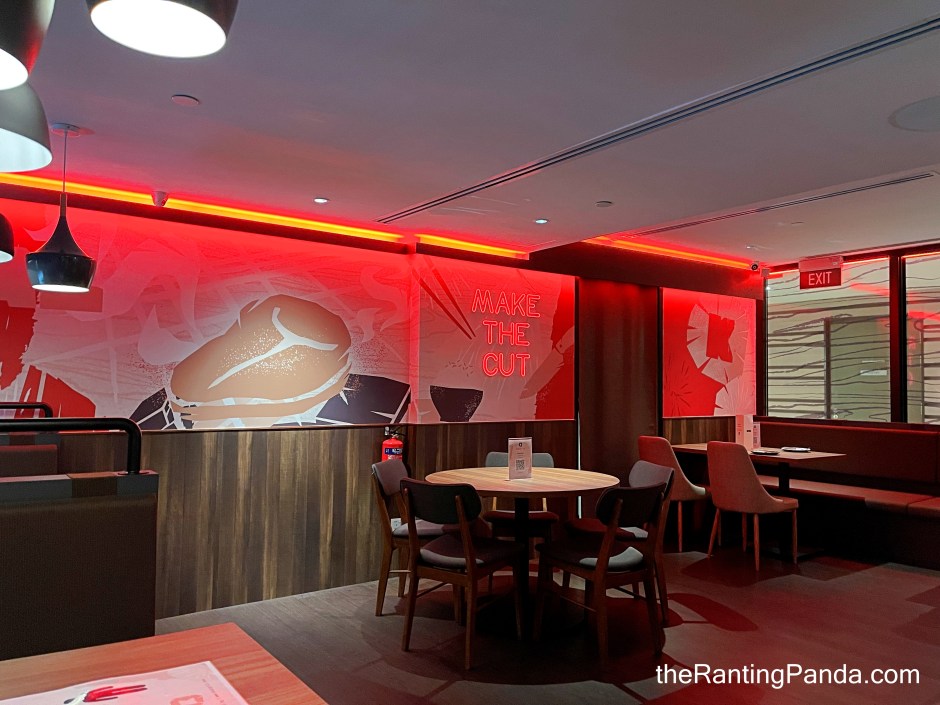 The interior of Koal is accentuated with red LED lights from day to night, along with natural light during the day. Go for the window tables if you can as it offers the most dining privacy. There are also Instagram-worthy feature walls pinned with neon signages such as “Meat Up & Chill Out” and “Make the Cut”.