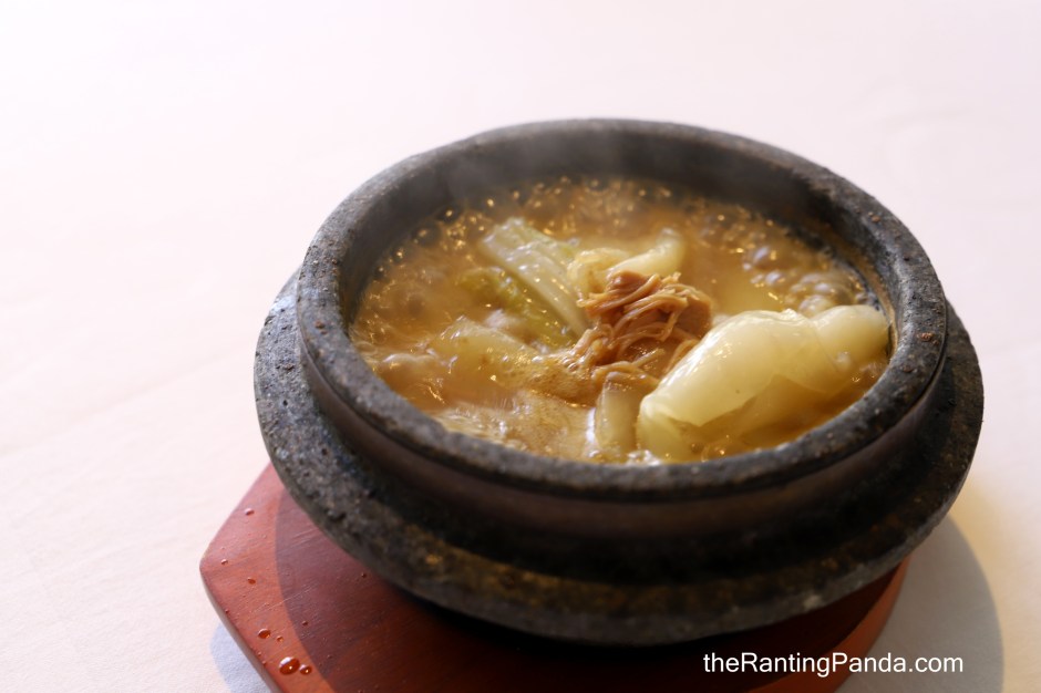 The next course is my favourite – Superior Chicken Soup with Dried Seafood and Chinese Cabbage in Stone Pot. For one, the portion is very generous and I love the luscious, collagen rich chicken soup. There is also something about serving soup in a hot stone pot which makes it more enjoyable.