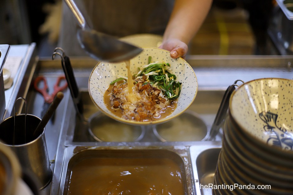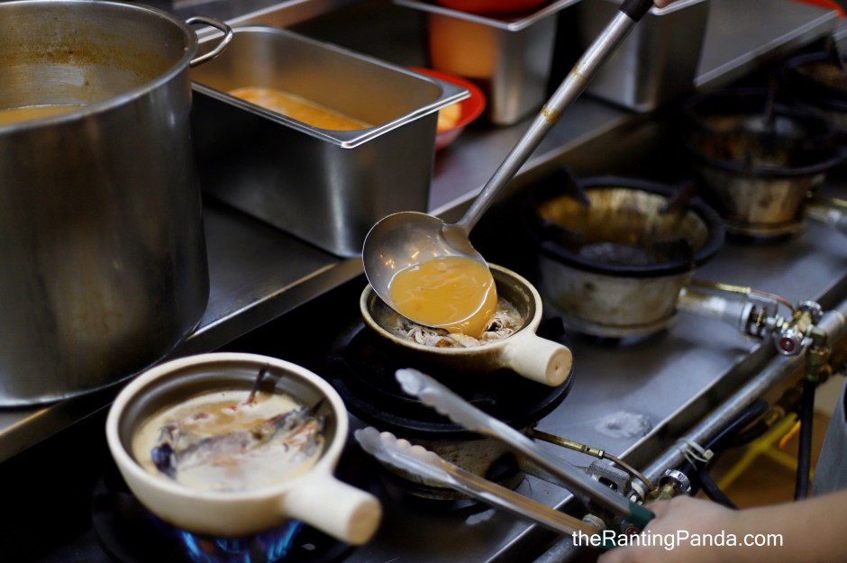 The Food There are various prawn noodle combinations to choose from, where the prawn broth is prepared over 20 hours each day from prawn heads and pork bones. If you stand right behind the counter, you will be able to see the big wok where the broth is being prepared!