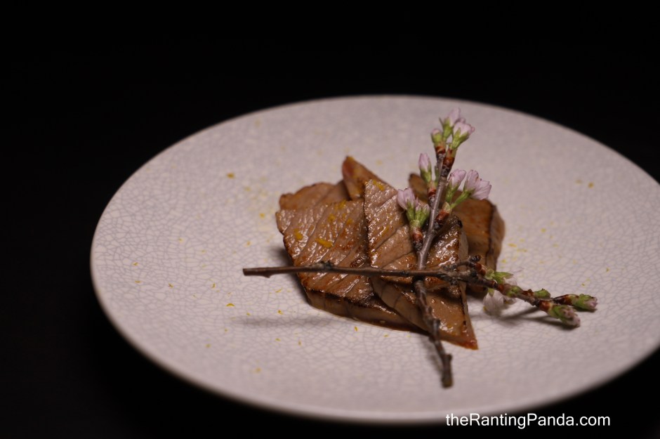 For bar bites, I am most amazed by how it is all prepared within the confined space of the open kitchen. I started with the refreshing Shizuoka Amera Tomato with Artic Salt (S$16), before proceeding to the Fatty Tuna Aburi with Yuzu (S$45).