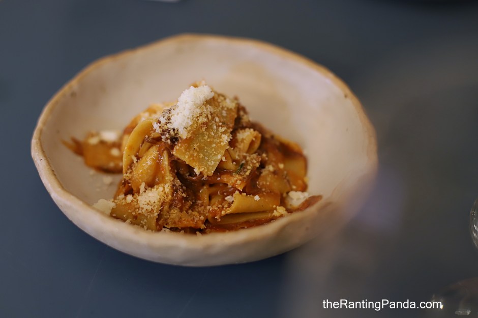On to pastas, I started with the Tortellini in Brodo (S$34), where the fresh egg pasta sheets are rolled out manually. Considered by many as the “king of pasta”, the pork-filled egg pasta floats in a clear, slow-simmered chicken brodo. The flavour of the broth is very light, while the tortellini spot a firm texture. As what chef shared with our table, this dish is almost like what an Italian grandma would prepare in the kitchen in a big pot. Very homely taste, and an apt pasta for a start.