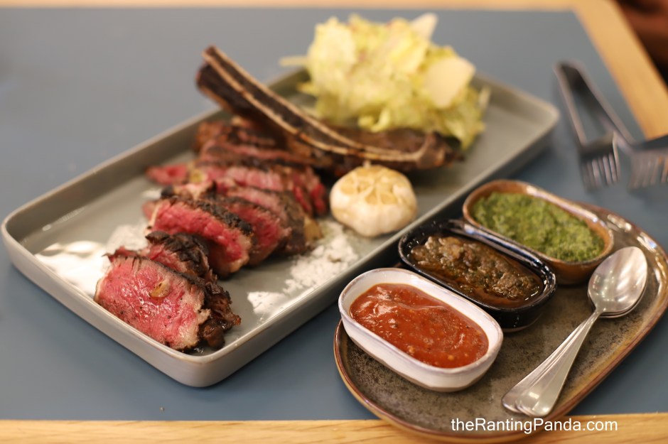 Working with a local specialist butcher in Joo Chiat, Butcher Box, the menu also offers a daily selection of premium pork and beef cuts dry-aged for up to 55 days. I had the off-menu special Bistecca di Tomahawk (S$248), a 55-day dry-aged grass-fed Tomahawk from Little Joe Farm in Australia, where their beef products are guaranteed a minimum marbling scare of MB4+.