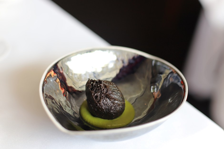 This is definitely one of Gaggan’s most instagrammed dish, the provocative “Lick It Up”. A mix of red chilli, tamarind and mango sauces, you go from bottom up, and the resulting mix of the three flavours blend well surprisingly.
