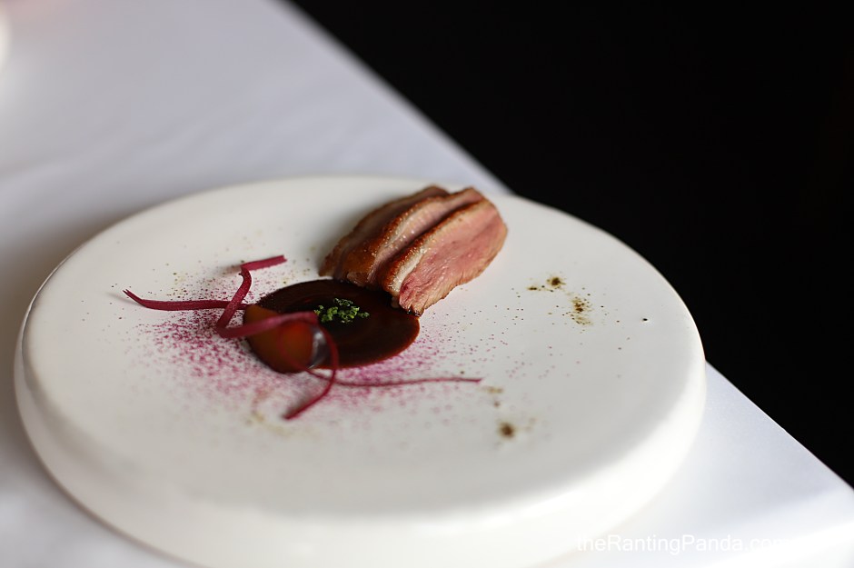 Another protein dish I had was the 14-days Dry Aged Duck grilled on binchotan, served along with compressed plum, tamarind honey sauce and purple potato chips. The duck meat is extremely flavourful and tender.