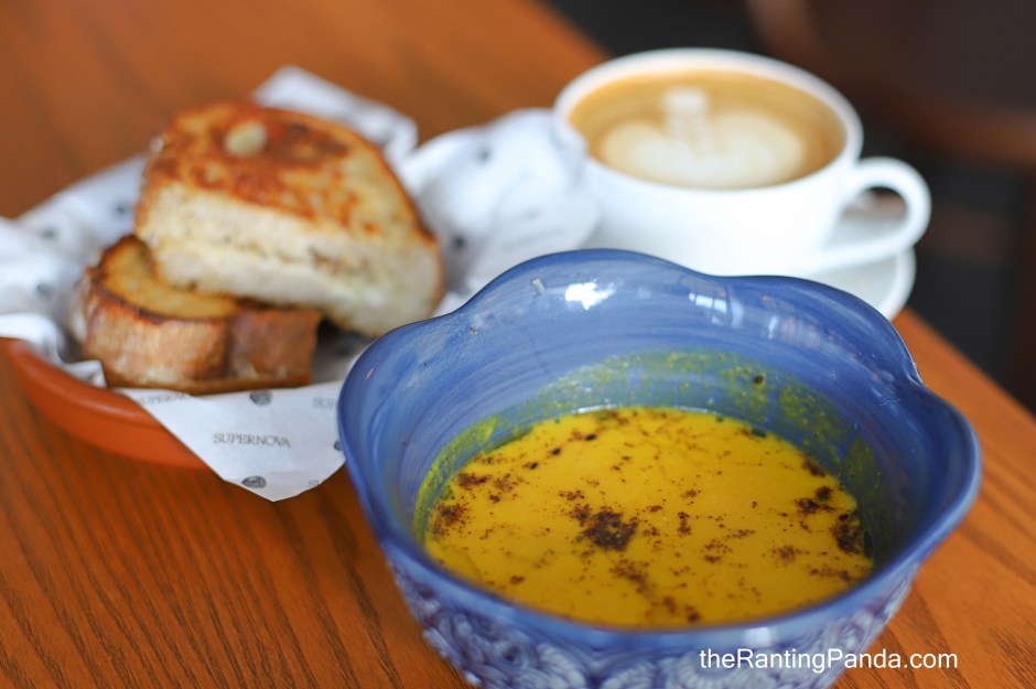 I headed to Supernova twice in the past few weeks, where I had the Grilled Cheese & Pumpkin Soup (S$18.50) for breakfast and the Mala Chicken Burger (S$22.50) for lunch.
