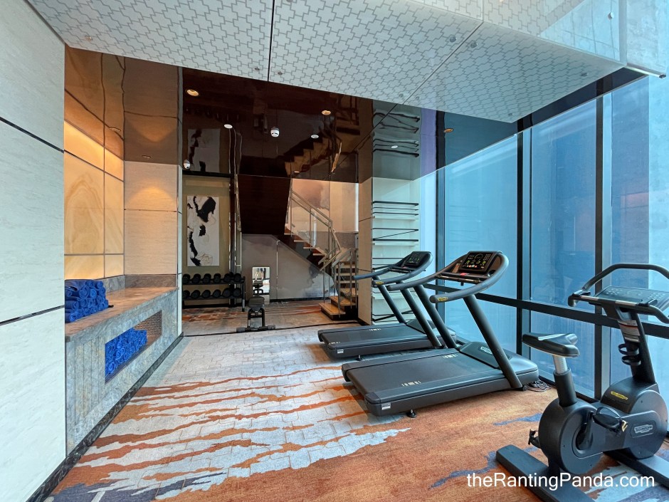 The Facilities There is a fitness centre along with an outdoor swimming pool if you need a space to workout. The gym is quite basic, with a treadmill, bench and couple of free weights. The outdoor pool is a decent size, and while it is not an infinity pool, it is fitted with jacuzzi where you can also get a good tan in the day with the ample sun deck chairs.