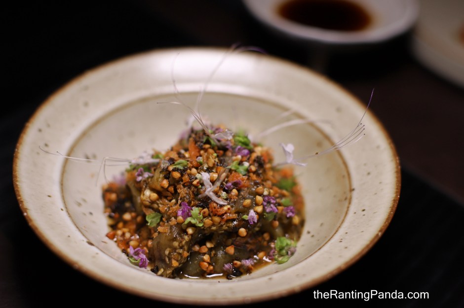 The Nasu Dengaku (S$20) is an eggplant dish, where the Australian eggplant is grilled over binchotan with nori white miso and garnished with deep-fried golden buckwheat, deep-fried sakura ebi, and hojiso (shiso) flowers from the 1-Arden Food Forest. The texture of the eggplant is soft and you get a very flavourful taste here from the grilled technique.