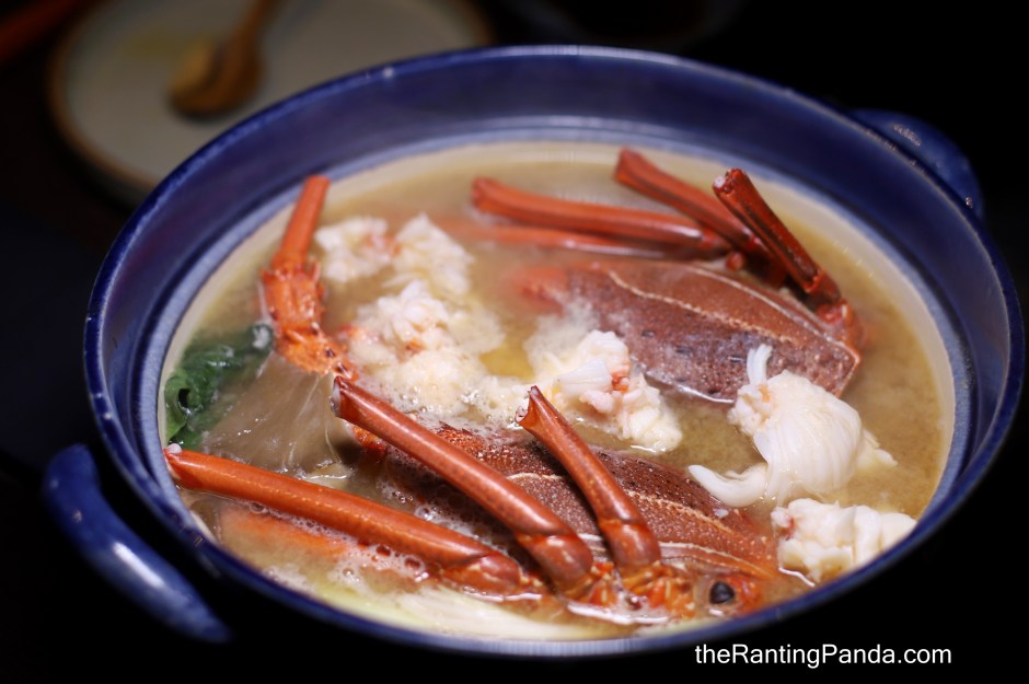I then had it the donabe-style, where the claypot is filled with lobster shell, lobster meat, cod fish, soft tofu, oyster mushrooms, miso and komatsuna (Japanese mustard spinach from the1-Arden Food Forest). It is quite a big portion, and a comforting way to enjoy the freshness of the seafood ingredients in a seafood stock.