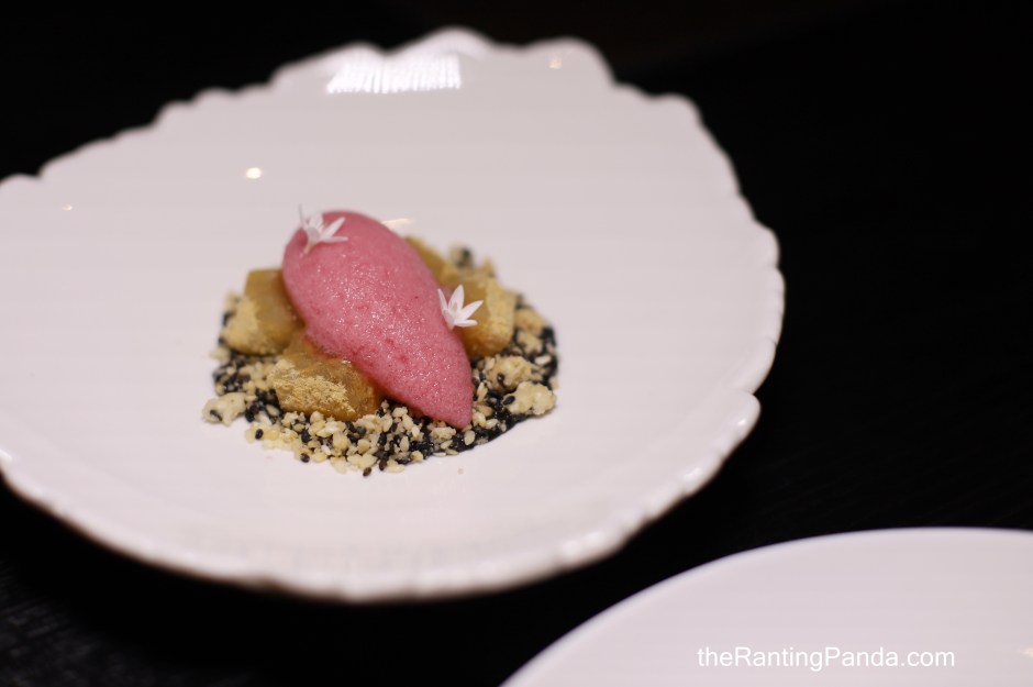 For mains, I tried the Kohitsuji Yaki (S$70) where the Grilled Australian Lamb is served with Red Garlic Sauce, Lemon Myrtle, Lemon Balm, Satsumaimo Japanese sweet potato puree, Calamansi, Edible Flowers and Leaves from the 1-Arden Food Forest. Not that big a lamb person, so this dish did not leave much of an impression on me.
