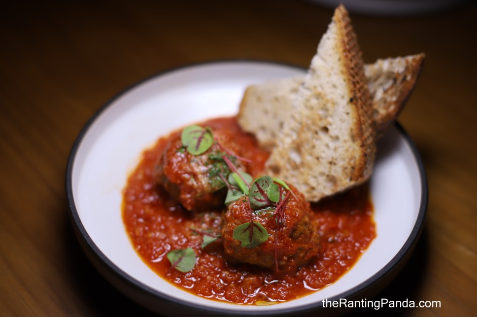 For small plates, I had the Faux Artichoke, Jackfruit Barigoule, Herb Aioli, Pangrattato (S$18) and the Meatballs Al Angeleno, Pork & Veal, Tomato, Parmigiano (S$28).