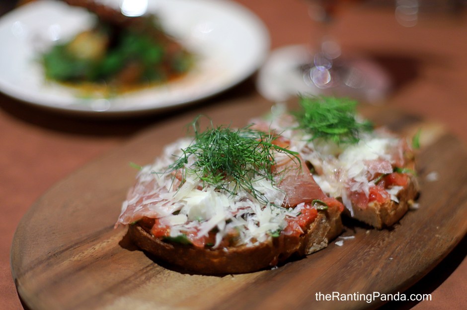 I started with the Bruschetta (S$19) – toasted bread grated with garlic and topped with Parma ham, buffalo mozzarella, cherry tomato concassé, rocket leaves and basil.