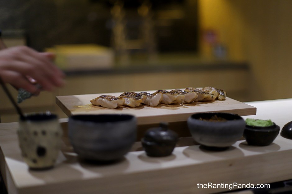 A Handroll Nodogoro “Benihitomi” is up next, where you get Grilled Nodoguro, or blackthroat sea perch grilled over the binchotan with sushi rice and homemade diced narazuke (pickled winter melon in sake and mirin) wrapped in a la minute-toasted nori sheet topped with freshly-grated wasabi.