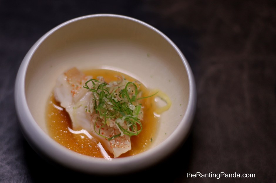 Sashimi is up next, where I had the Menuke (Pacific Sea Perch) served with salted kombu. It is probably my first time having this rare fish.